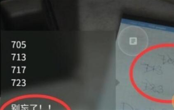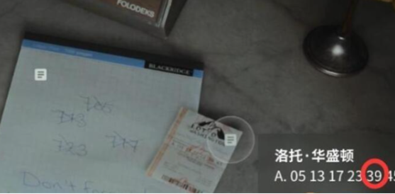 3、然后玩家们就会发现上面有四串数字被划掉。所以玩家们推测密码应该是第五个。